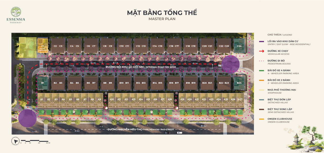 Trên khuôn viên 2 hecta, giới hạn chỉ 74 căn nhà phố và biệt thự, Essensia Parkway là biểu tượng của sự khan hiếm và đẳng cấp, nơi mỗi chủ nhân tinh hoa tìm thấy một chốn an cư xứng tầm, một tuyệt tác dành riêng cho những tâm hồn.