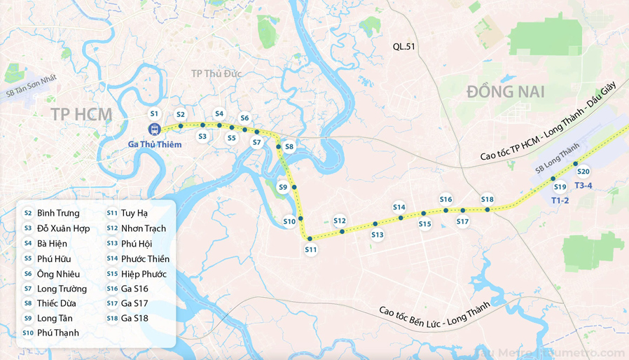Tuyến đường sắt Thủ Thiêm – Long Thành gồm 20 ga dừng, đi qua TP.HCM và Đồng Nai, kết nối các khu vực trọng điểm như Nhơn Trạch và Long Thành, góp phần giảm tải giao thông và tăng khả năng kết nối vùng.