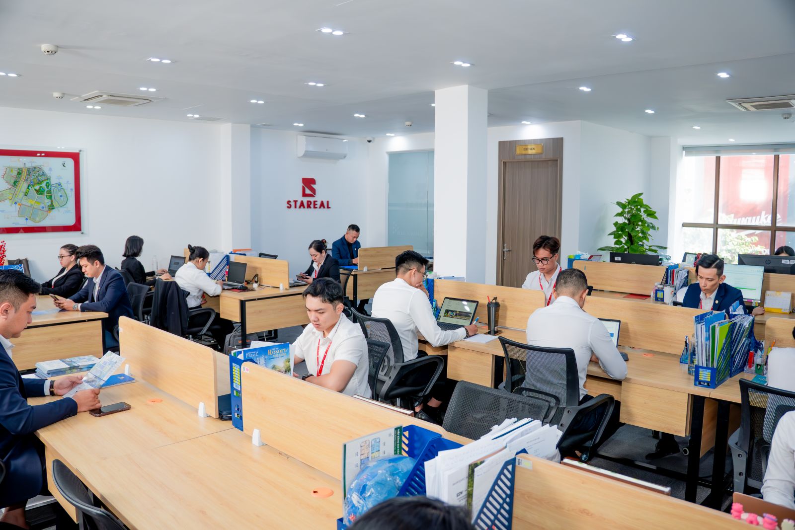 Con người là tài sản quý giá tại Stareal. Chúng tôi sở hữu đội ngũ hơn 200 cán bộ – nhân viên chuyên môn cao, được đào tạo bài bản, giàu kinh nghiệm thực chiến trong ngành bất động sản và các lĩnh vực liên quan như tài chính, pháp lý, marketing, quy hoạch,…